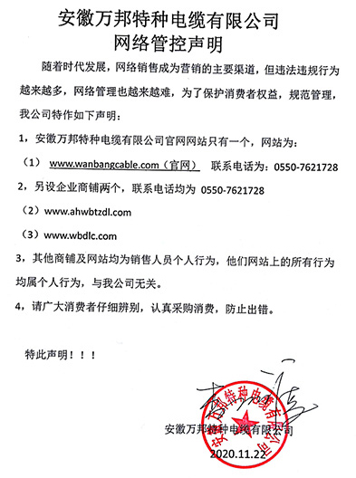 鄭重聲明:安徽萬邦特種電纜有限公司官方網站為:www_wanbangcable_com.rspaintersllc.com,除此之外無任何子網站或合作網站,其余均為假冒偽劣。電話:0550-7621728 13485756353 地 址:安徽省天長市滁州高新技術產業開發區經四路29號